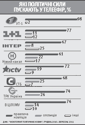 Количество программ о политических событиях на телевидении непрестанно сокращается, а оппозиции выделяют все меньше времени для того, чтобы разъяснить свою позицию. На это указывают результаты мониторинга политических новостей, который с декабря 2010-го по сентябрь 2011-го проводила Академия украинской прессы.