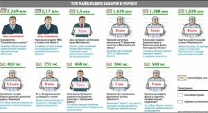Средняя взятка в 2015-ом составляла приблизительно 40 тыс. грн. Это на 10 тыс. больше, чем в позапрошлом году. Общая же сумма взяток, на которых поймали чиновников, в прошлом году была 19 млн грн — против 16 млн грн в 2014 году.