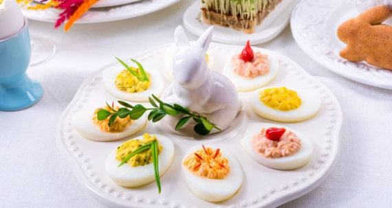 Вареные яйца, которых будет много на Пасху, можно фарширововать цветными начинками из овощей и соусов. Они станут не только украшением для праздничного стола, но и порадуют оригинальными вкусами. Рецепты публикует claudia.pl.