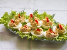Фарш к яйцам может быть острым, мягким, с рыбой, овощами, грибами и травами.