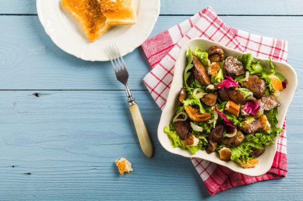 На ужин можно приготовить интересные рецепты, к тому же на скорую руку и не дорого. Удачным выбором будет теплый куриный салат. В нем печень нежная и богатая витаминами. Она лучше сочетается с помидорами, шампиньонами, зеленью, листьями салата, болгарским перцем. Также вкус этих продуктов раскроют груши и апельсины.