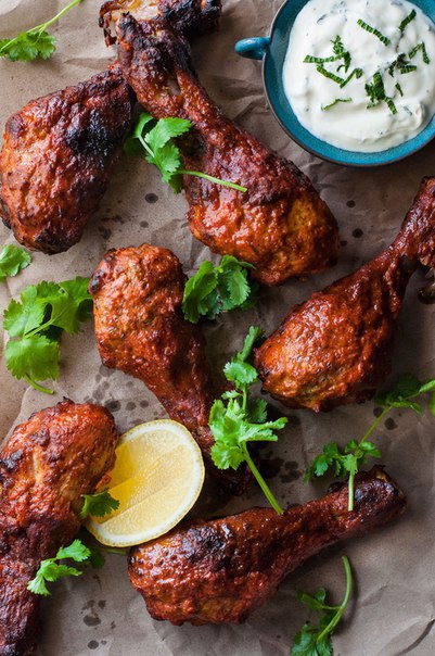 Прежде, чем запечь цыпленка в тандыре, его маринуют в йогурте и острой смеси пряностей на основе перца чили. В результате чего, оно выходят ярко-красными. В Индии к такому цыпленка обязательно подают рис и пшеничные лепешки.