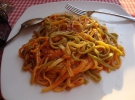 Особое блюдо - спагетти с шоколадом. В тесто для макарон добавляют несколько столовых ложек какао-порошка и сахарной пудры, если какао не сладкое. Лапша получится коричневая, с мягким вкусом шоколада. Ее можно подавать на десерт, поливать сгущенным молоком или растопленным шоколадом.