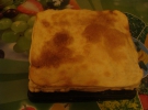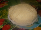 Тесто готовил накануне. Для него взял пачку маргарина. Заранее вытащил из холодильника, чтобы размяк. Из твердого трудно месить тесто. К нему добавил 2 стакана просеяной муки, вместе перетер. В четверть стакана холодной воды выбил 1 куриное яйцо. Добавил 1 столовую ложку уксуса, щепотку соли. Все хорошо перемешал. Тесто положил на ночь в холодильник. На следующий день тесто разделил на восемь частей. Каждую выпекал по 5-7 мин.