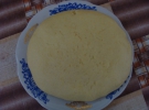 Полкилограмма творога протирает через сито или разминает вилкой, чтобы не было комочков. Добавляет 3 яйца, 200 грамм сахара и 1 столовую ложку мягкого масла. Первую часть теста распределяет по форме, сверху заливает творожной массой. Она получается слегка жидковатой. В духовке при температуре 180-200 градусов выпекает 45 минут.