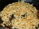 "Полтора стакана риса заливаю тремя стаканами кипятка - и также на маленький огонь, пока вода не выкипит. Отваренное заранее куриное мясо измельчаю. Жарю, порезанный кубиками, лук, когда лук зазолотится добавляю натертую морковь и все вместе тушу. На полтора стакана риса хорошо будет три луковицы и три морковки", - рекомендует Катя.