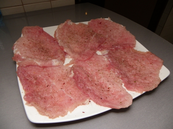 Для приготовления кручеников хозяйка берет шесть кусков свиной вырезки, хорошо промывает, сушит и отражает, как на отбивные. Солит и перчит.