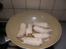 "К остальным тушеным овощам добавляю порезанные грибы маслята, - продолжает делиться рецептом, - добавляю соль и тушу их под крышкой. А тем временем на другой сковороде слегка обжариваю крученики с обеих сторон, осторожно вынув зубочистки ".