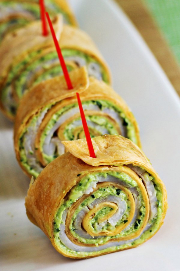 Есть моменты когда хочется попробовать чего-то необычного. Именно такая тортилья. Это мексиканская закуска, состоящая из тонкой кукурузной лепешки с начинкой и соусом песто. Получается яркое блюдо с пикантным вкусом.