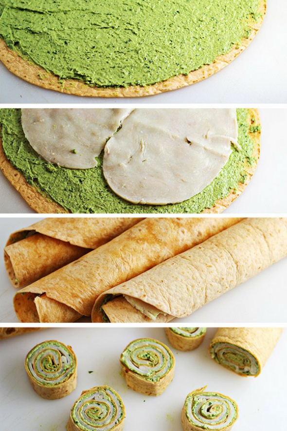 Свернуть тортильи в аккуратные роллы и замотать каждый в пищевую пленку.