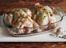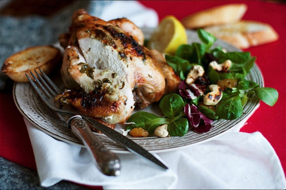 Цыпленок в чесночном масле получается сочным и с хрустящей пикантной корочкой. Все, что нужно сделать перед запеканием, это положить под кожу сливочное масло с заправкой. Для сладкого привкуса снаружи цыплят натирают медом и соевым соусом.