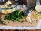 Теперь смешайте сливочное масло комнатной температуры с чесноком, зеленью, лимонным соком и цедрой.