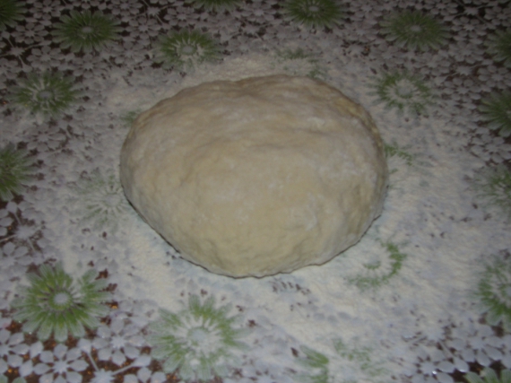 Насыпает в посуду 2 стакана муки, 1 стакан подогретого молока и 1 яйцо, добавляет щепотку соли. Вымешивает тесто.