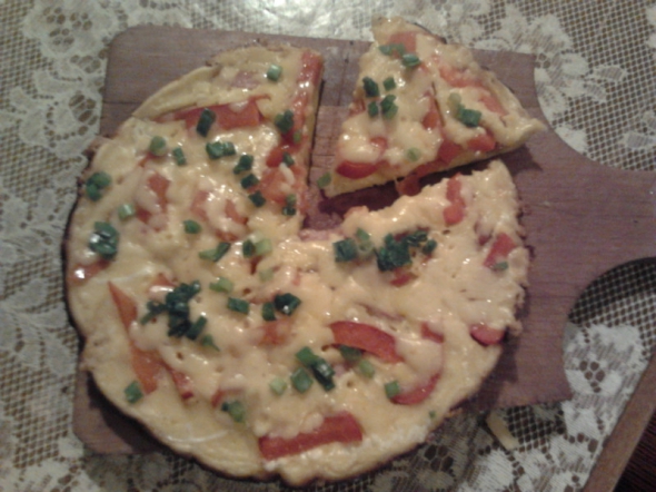 Такой пиццы хватает на 2-3 порции. Чтобы насытить ею компании, следует увеличить пропорции вдвое. Есть блюдо нужно, когда немного остынет, тогда сыр будет не таким вязким.