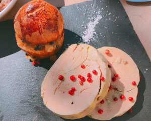 Печень промыть и высушить. Нарезать яблоко, лук и чеснок. В сковороде разогреть масло. Обжарить лук и чеснок, вслед добавить печень и яблоко. Обжарить еще несколько минут. Печень должна быть без крови. Полить виски, осторожно поджечь. Дать прогореть. Приправить майораном, мускатным орехом, солью и перцем. Измельчить содержимое сковороды в блендере. Разложить по банкам, залить растопленным сливочным маслом и поставить в холодильник. Готовый паштет подать с подсушенными ломтиками багета и любимыми ягодами.