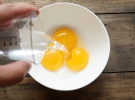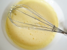 Поставить миску на водяную баню и, помешивая постоянно венчиком, подержать 2-3 минуты. Смесь начнет пениться, но не стоит ее передерживать, а то получится омлет.