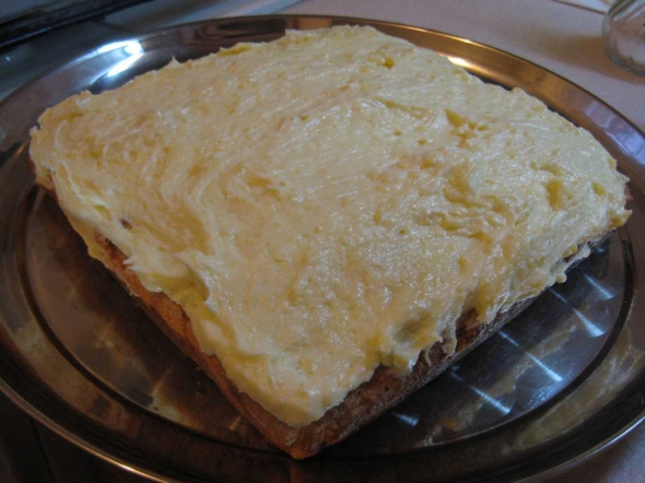 В охлажденный крем Наталья добавляет 200 гр сливочного масла. Все сбивает миксером.