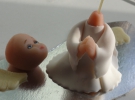 "Я работаю в основном с молочной мастикой, - рассказывает мастерица. - Из этого материала можно лепить что угодно - и туфельку, и машинку, и куклу или ангелочка".