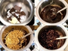 Для хрустящей начинки необходимо растопить шоколад со сливками и сливочным маслом. Немного охладить и смешать с воздушным рисом.