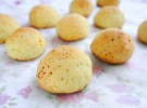 Сырные шарики с начинкой выложить на противень, смазанный маслом или застеленный пергаментом.