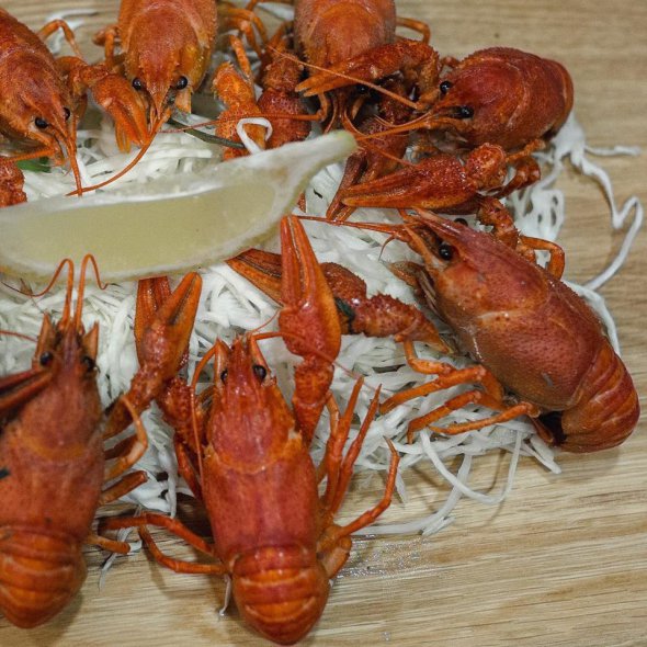 Среди основных блюд в меню стейк из лосося, форель, тилапия, карп по-домашнему, осьминоги, лангустины и мидии в винном соусе. Кроме рыбы, здесь подают грибной суп, салат "Цезарь", пельмени, австрийский шницель и куриные наггетсы. Алкоголь в заведении не продают.