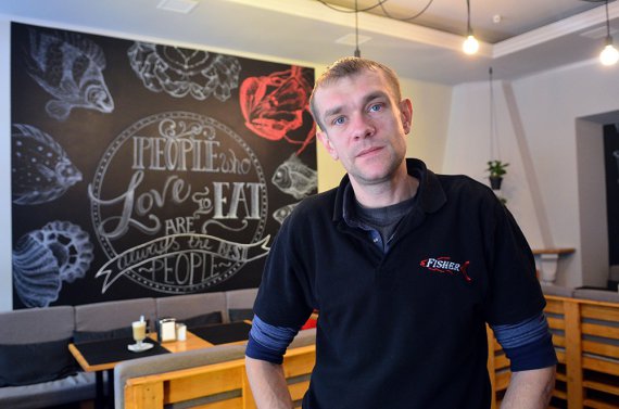 Ветеран АТО Сергей Бондарук открыл во Львове на улице Модеста Менцинского рыбный ресторан Fisher. Шеф-поваром в заведении является он сам.
