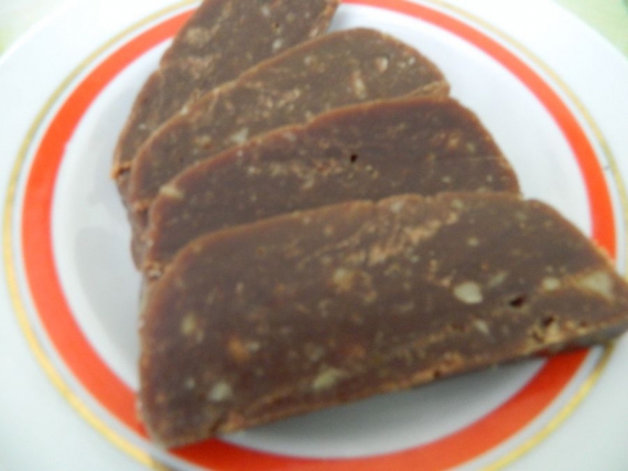 "Печенье надо покрошить в блендере. Но руками оно легко разминается. Его можно даже сухарями заменить - все равно в шоколадной массе хорошо растворяется. Но если взять твердое печенье вроде "Марии", щербет не удастся. Как-то пробовала заменить - печенье так и осталось твердым. Хотя получилось тоже оригинально. По вкусу напоминало торт "Муравейник", - отмечает Наталья.