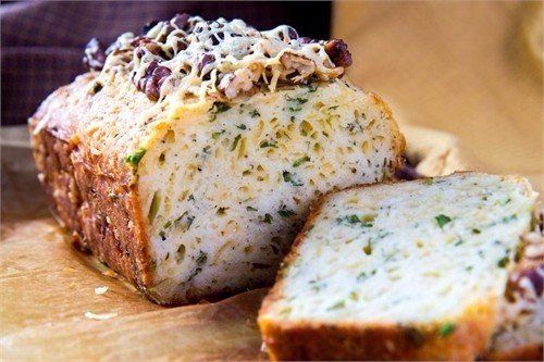 Сырный кекс является необычной выпечкой. Он одновременно служит закуской. Сыр при запекании плавится и поэтому пирог получается невероятным, который просто тает во рту. Зернистой горчицы кладут только чайную ложку, чтобы была изюминкой блюда, а не перебивала вкус остальных ингредиентов. Укроп и петрушка является ароматной ноткой кекса.