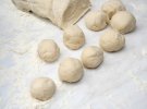 Хозяйка берет для теста 600 гр муки высшего сорта, стакан теплой кипяченой воды, смешивает, добавляет ложку сахара, солит.
