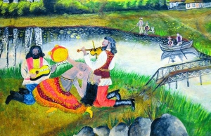 — Женщины ими украшали дома. Мужчины это называли "бабскими фантазиями". Популярными были изображения трех богатырей, русалок, влюбленных и пейзажи. На дни рождения дарили рисованные цветы. Молодым на свадьбу приносили картины с лебедями. Но самым популярным сюжетом была Аленка с оленем. Есть версия, что это перерисовка с немецкой почтовой открытки начала ХХ века.