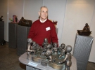 На втором этаже свои работы показывают 45 скульпторов. За участие каждый заплатил 9,5 тыс. грн. Киевлянин 41-летний Андрей Северинко гордо смотрит на свою работу "Капитан Ревес". Это 2-метровый мужчина в бежевой робе и скафандре. На его очках раскачивается саранча из металла. В руке капитан держит клетку с булькатым пауком.