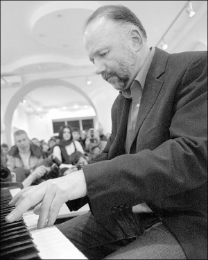 Писатель зачитал три отрывка. После каждого садился за рояль и что-то играл.