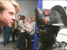 — Ну вы мне скидку делайте, как постоянному покупателю, — говорит директору галереи Сергею Сурнину. Он сбрасывает 40 грн. — Я живу в Испании. Создала музей "Кошкин дом". Собираю все, что связано с котами, — открытки, картины, скульптуры. У меня более восьми тысяч экспонатов. Приехала на салон, чтобы пополнить коллекцию.