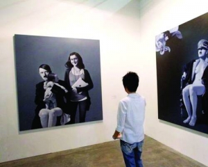Рональд Маннулланг начал рисовать картины с Гитлером в 2007-м. Только сейчас завершил цикл. Выставил работы в галерее города Санчабактаир.