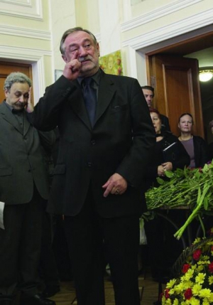 Богдан Сильвестрович вытирает слезы. У гроба на скамейке сидит вдова покойного Анна Сердюк. Лесь Александрович прожил с ней около 30 лет. У них есть сын Александр. До того актер был женат на актрисе Ирине Буниной, которая родила ему дочь Анастасию. Дети на похороны не пришли. Говорят, дочь не общалась с отцом после его развода с Буниной.