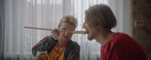 Также искал актрису, которая не потерялась бы на его фоне. Даже если вы рядом с Андреем будете идти по улице голым, все будут смотреть на него - 2-метровую каланчу. Но мы справились. Роль возлюбленной исполнила дебютантка, студентка университета Карпенко-Карого Каролина Мруга. Я попросил ее немного набрать вес, чтобы пара была интереснее.