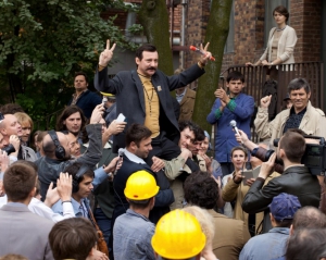 — Я не политик, я электрик, — говорит с экрана исполнитель роли Валенсы, руководителя польского профсоюза "Солидарность" Роберт Венцкевич, 46 лет. — В тюрьме хорошо получается думать. Нет шума. Там разработал систему, как сообщать, что меня задержали. Иначе нет никакой пользы от того, что я под арестом.