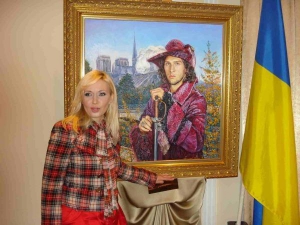 — Александр Лукьянченко написал пейзаж "Моя Украина". Заместитель губернатора Борис Адамов пририсовывал на нем рябину. А Людмила Янукович дорисовывала на ней бело-голубую ленту.