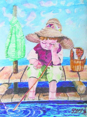 Картину "Рыбачек" севастополец 45-летний Руслан Раб написал акварелью. Кисточку держал во рту.