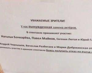 2 мая в Севастопольском центре культуры и искусств объявили о замене актеров в представлении-антрепризе "Любовь по понедельникам". В оккупированный Крым из Москвы не приехали Андрей Чернышев, Мария Добжинская, Вячеслав Разбегаев.