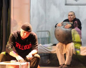 Спектакль по роману американца Кена Кизи поставил херсонский режиссер Сергей Павлюк. Действие происходит в психиатрической больнице. Это символ государства, которое подавляет личность. Постановку запретили в Крыму. Идея принадлежала крымскотатарском режиссеру Билялу Билялову. Полтавчане в знак солидарности создали спектакль у себя.