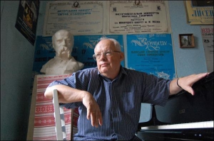 Встречаемся во Львовском областном союзе композиторов, который он возглавляет. В книжном шкафу возле рабочего стола — тома Большой советской энциклопедии. Напротив — черный рояль. За ним — бюст Тараса Шевченко.