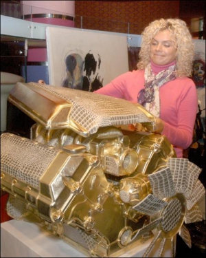 37-летняя одесситка Оксана Мась показывает в киевском клубе " Арена-Сити" выставку "Клапан ягуара". Клапан — деталь, подающая горючее к цилиндрам автомобильного двигателя. Но на выставке демонстрируются не клапаны, а целые двигатели к авто "ягуар", " мазда" и " БМВ". Мась собственноручно сделала их из кожи. Один двигатель шила три месяца.