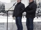 Вели церемонию братья Капрановы. Когда Дмитрий Капранов поднимался на подножие памятника, он поскользнулся и упал на колени. Первой на сцену пригласили поэтессу Наталку Позняк-Хоменко.