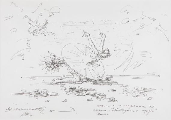 "Есть такая вещь - дед-лайн. Тогда становишься и рисуешь несмотря ни на что. Кроме того, в Одессе живу, надо чтобы картина высохла и переправить ее успеть. Вот действительно бывает такое - озарение. Рисуешь и не понимаешь, почему это рисуешь. Эскиз этой картины у меня был давно. Но на ней не было этой девушки. Она появилась, когда умерла Дарья. Она в светлом платье и красных туфлях. Так ее одеть мне жена посоветовала. Дарья была стильной женщиной. Думаю, ей бы этот наряд понравился. Когда приехали в Киев, то столкнулись с проблемой. Забронировали квартиру на Крещатике, а ее надо только по паспортам оформлять, которые мы забыли. Единственная из всех киевских знакомых, кому решились позвонить - была Дарья. Приехала за полчаса, привезла свой паспорт, оформила на себя квартиру", - рассказал художник.