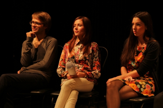 "Я думаю зритель будет тупо "ржать" и воспринимать спектакль как стебную комедию" - апеллирует автору парень в первом ряду.