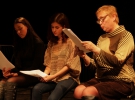 "У нас было три репетиции. Сначала распределили слова. Затем читали, - рассказывает Дарья, участница театрального фестиваля. - Чтение это также зрелище, но эмоционально его легче делать, чем играть спектакль".