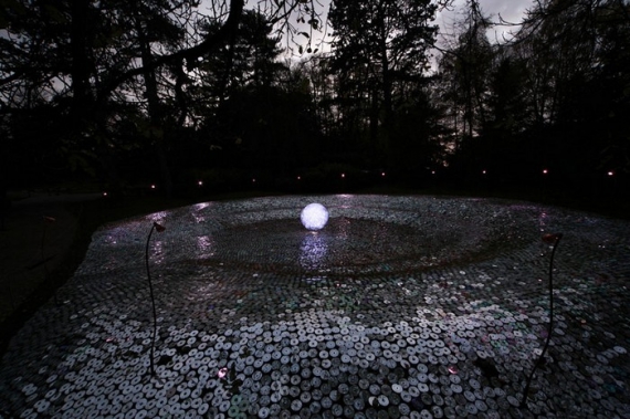 В этом уютном типично английском парке Брюс Мунро создал две гигантских инсталляции - "Angel of Light" и "Blue Moon". Каждая из них состоит из нескольких десятков тысяч компакт-дисков, а также множества светодиодов для создания впечатляющей подсветки в темное время суток.