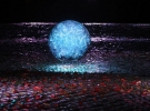 А работа "Blue Moon" похожа на огромное блюдце диаметром 28 метров, посреди которого находится большой светящийся голубым светом шар. Для создания соответствующей звуковой атмосферы, рядом установлены колонки, из которых в случайном порядке звучат 18 тематических песен про Луну от разных авторов и исполнителей.