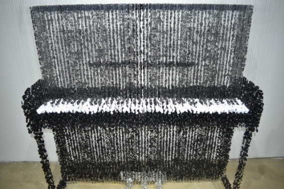 Самой известной скульптурой Аугусто Эскивель, впрочем, считается Upright Piano. Это огромное изображение пианино, созданное из 30 000 черных и белых пуговиц, собранных в гирлянды. Общий вес скульптуры составляет более 20 кг, а работа над этим проектом заняла у автора около 2,5 месяцев.